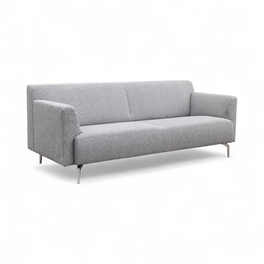 Als getoond leverbaar uit voorraad in parelmoer/donkergrijze stof, uitgevoerd als 4-zitsbank (210 cm) met gepolijst aluminium onderstel.