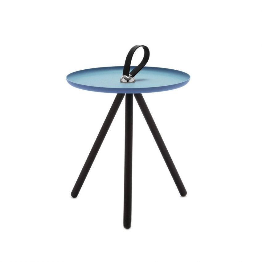 Bijzettafel RB 973-160 is een eigentijds design naar ontwerp van Pascal Bosetti voor het merk Rolf Benz. Deze tafel is opgebouwd uit een onderstel in massief zwart eiken en een blad in de kleur blauw (RAL 5020). Het tafeltje is afgewerkt met een kernlederen lus in donkerbruin.