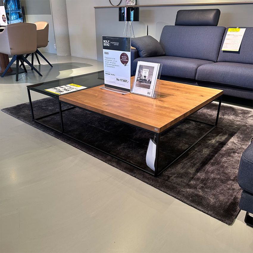 De Rolf Benz RB 985 is uitgevoerd in een combinatie van notenhout en glas.