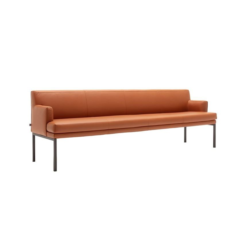 Eetkamerbank 644 van Rolf Benz is een ware blikvanger in ieder interieur dankzij het luchtige ontwerp. De bank is leverbaar in vier breedten en in stof of leder naar keuze. Het metalen onderstel kan worden gelakt in verkeerszwart, zilver of umbragrijs.